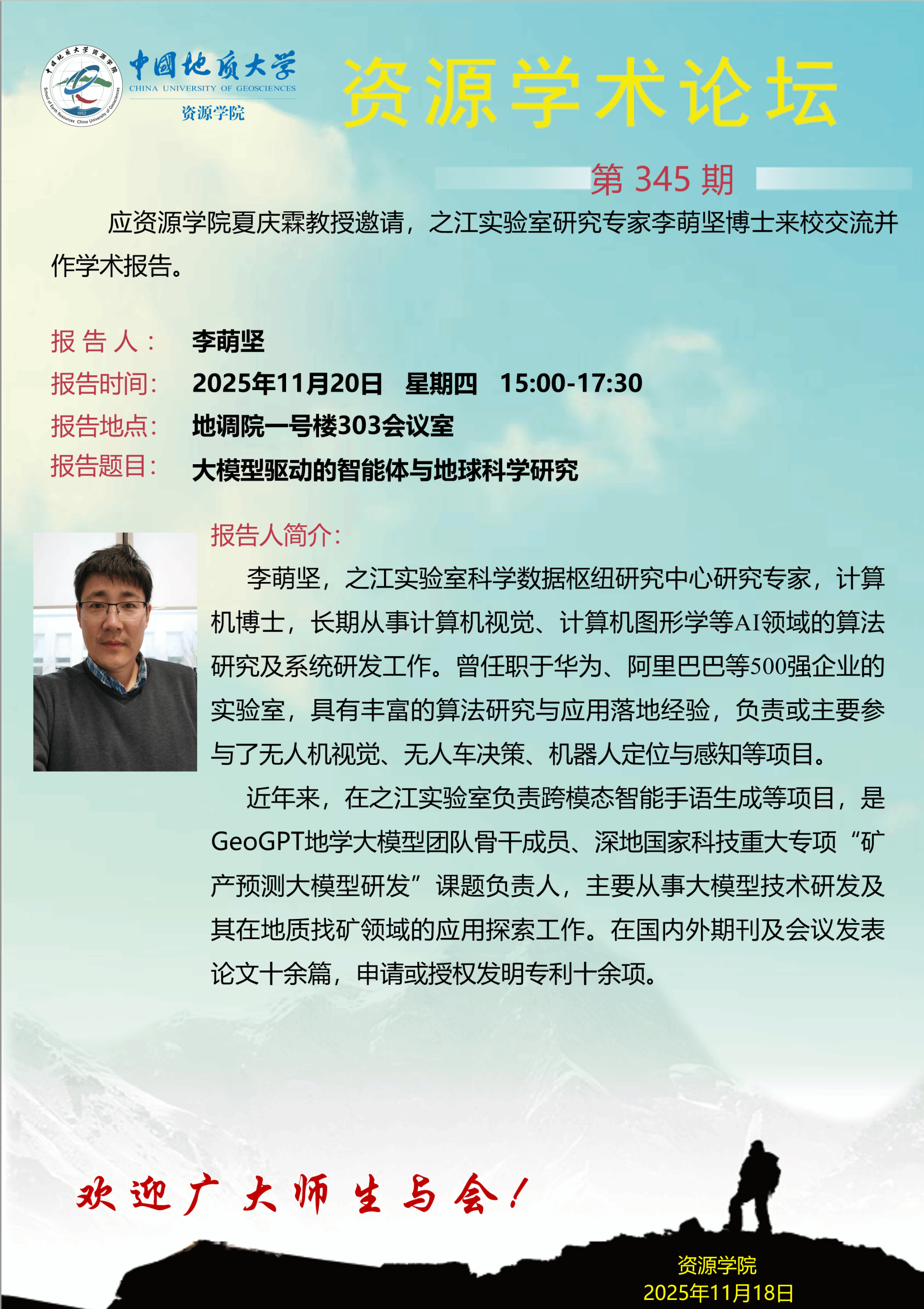 【11月20日】第345期资源学术论坛:李萌坚学术报告