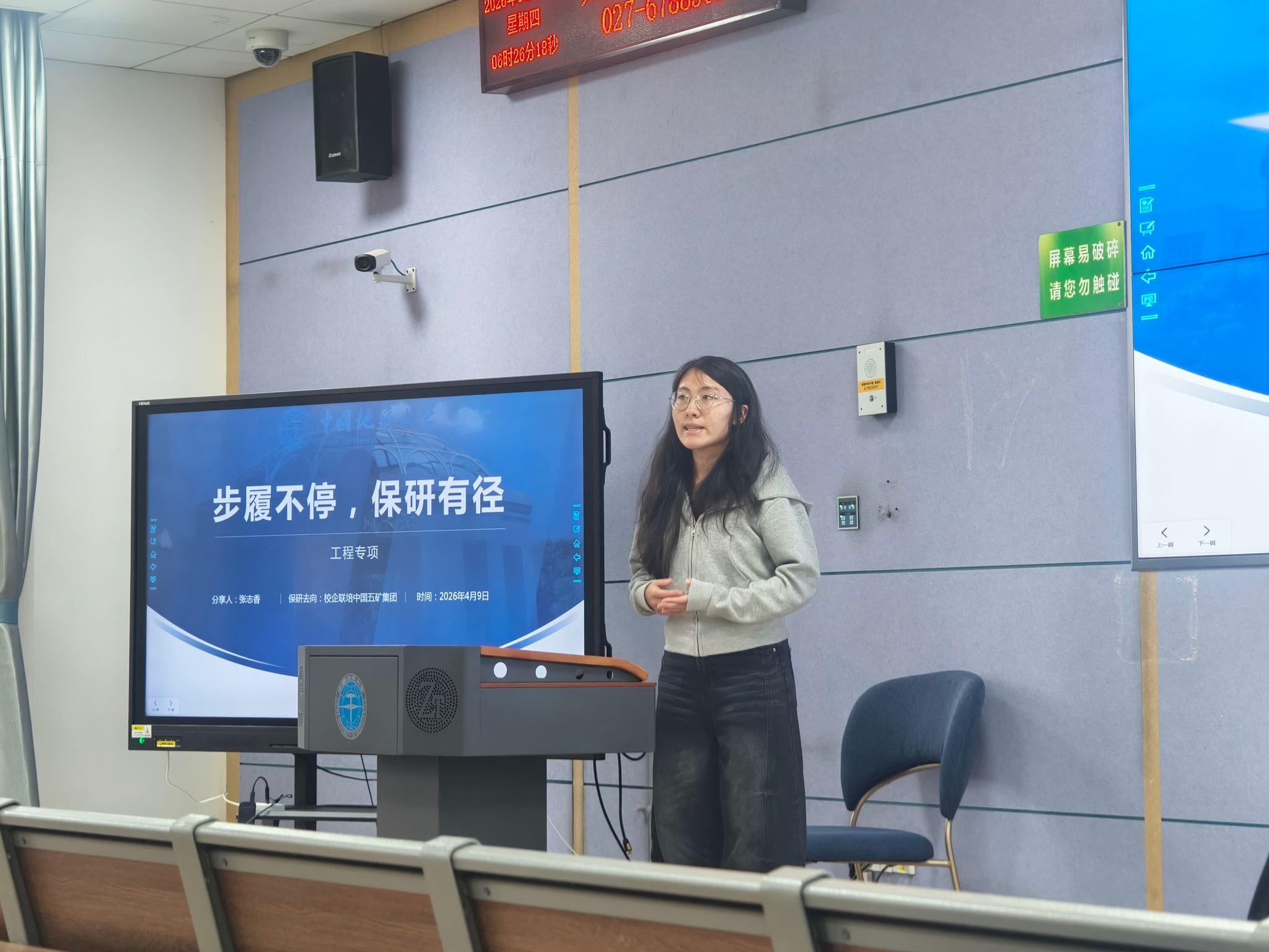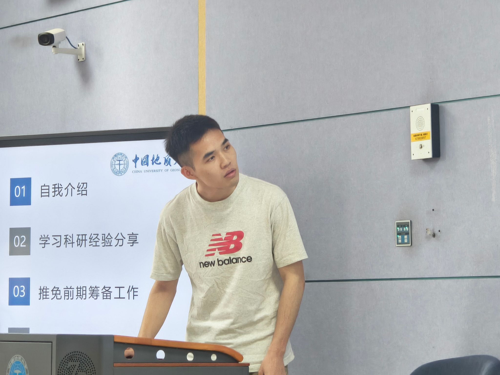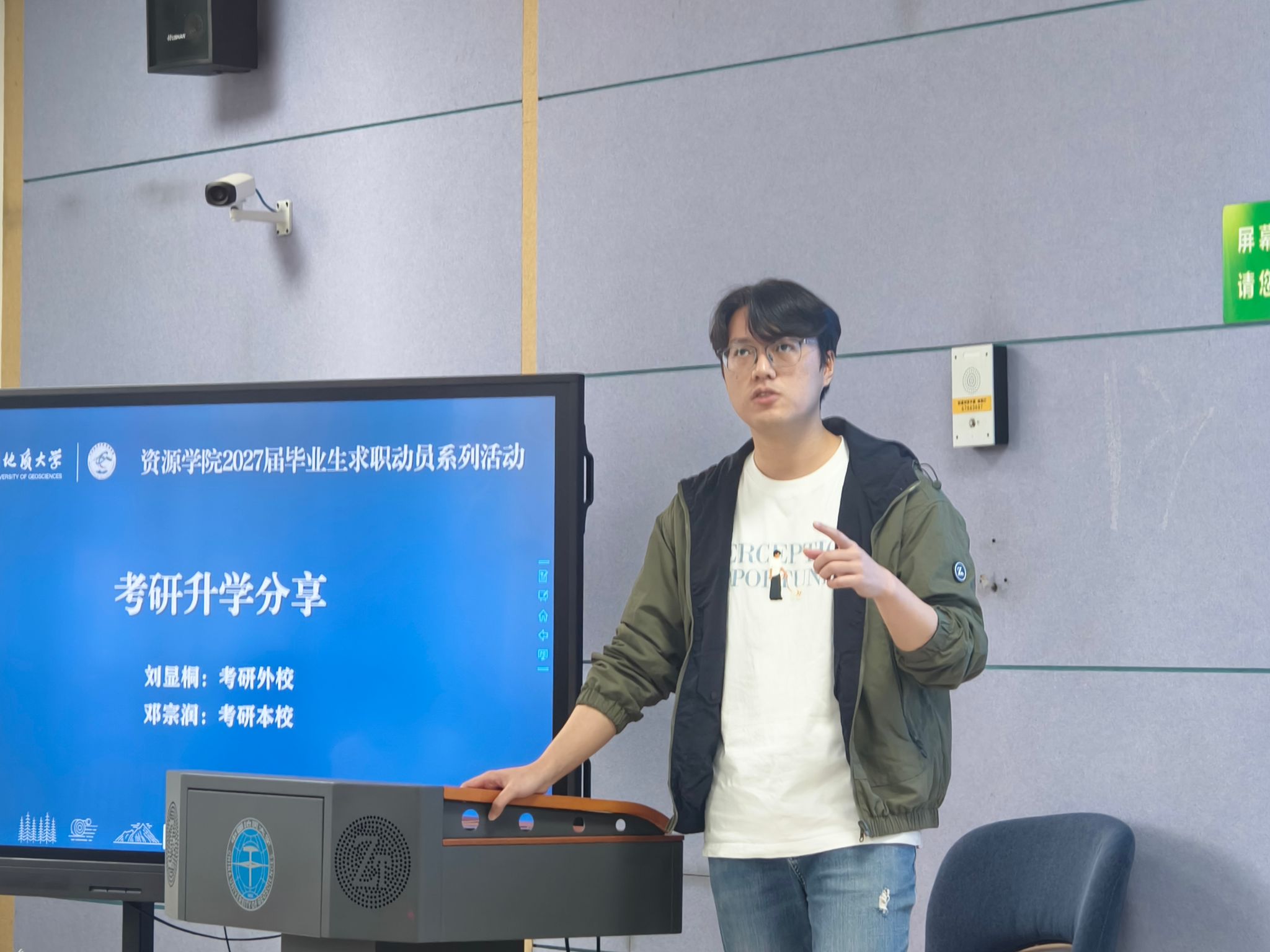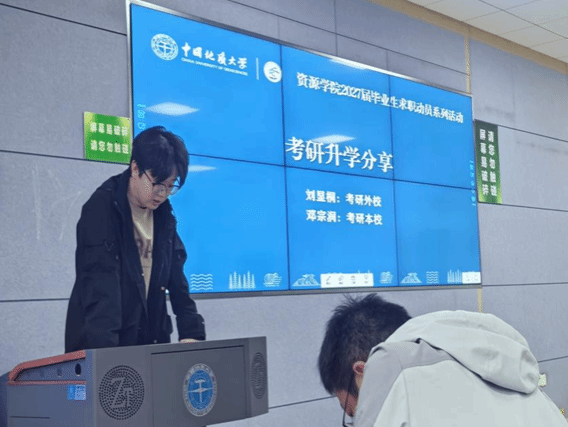 2022级本科生、考研至本校的学生邓宗润结合今年考研形势,重点讲解了复试准备的“信息差”问题。他建议报考本校的同学提前了解导师课题组的研究方向,通过学院网站查找导师近期发表的论文,并在初试结束后主动发邮件联系。他还整理了本校资源科学与工程系近三年复试常考的专业课题目类型,提醒大家复试前至少完成两轮模拟面试。