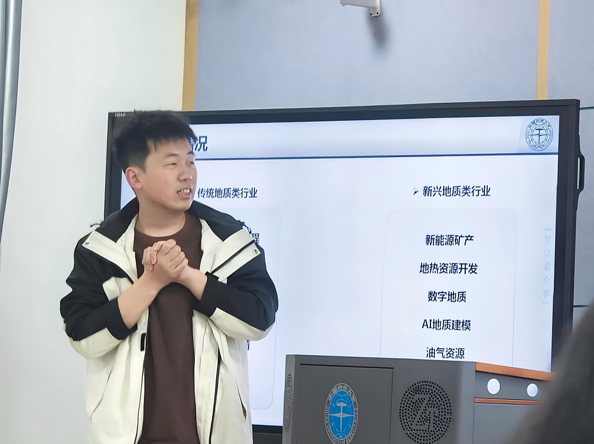 2023级、签约中铁资源集团有限公司的研究生张志远重点分享了“如何根据行业形势锁定职业方向”。他建议同学们先通过学院官网、行业报告了解地质行业不同细分领域(如矿产勘探、矿山开发、资源评估)的用人需求,再结合自身专业兴趣选择赛道。他以自身为例,对比了央企、省属国企和事业单位在编制稳定性、晋升路径和地域分布上的差异,提醒大家不要盲目追求“编制”,而要看岗位与个人职业规划的匹配度。