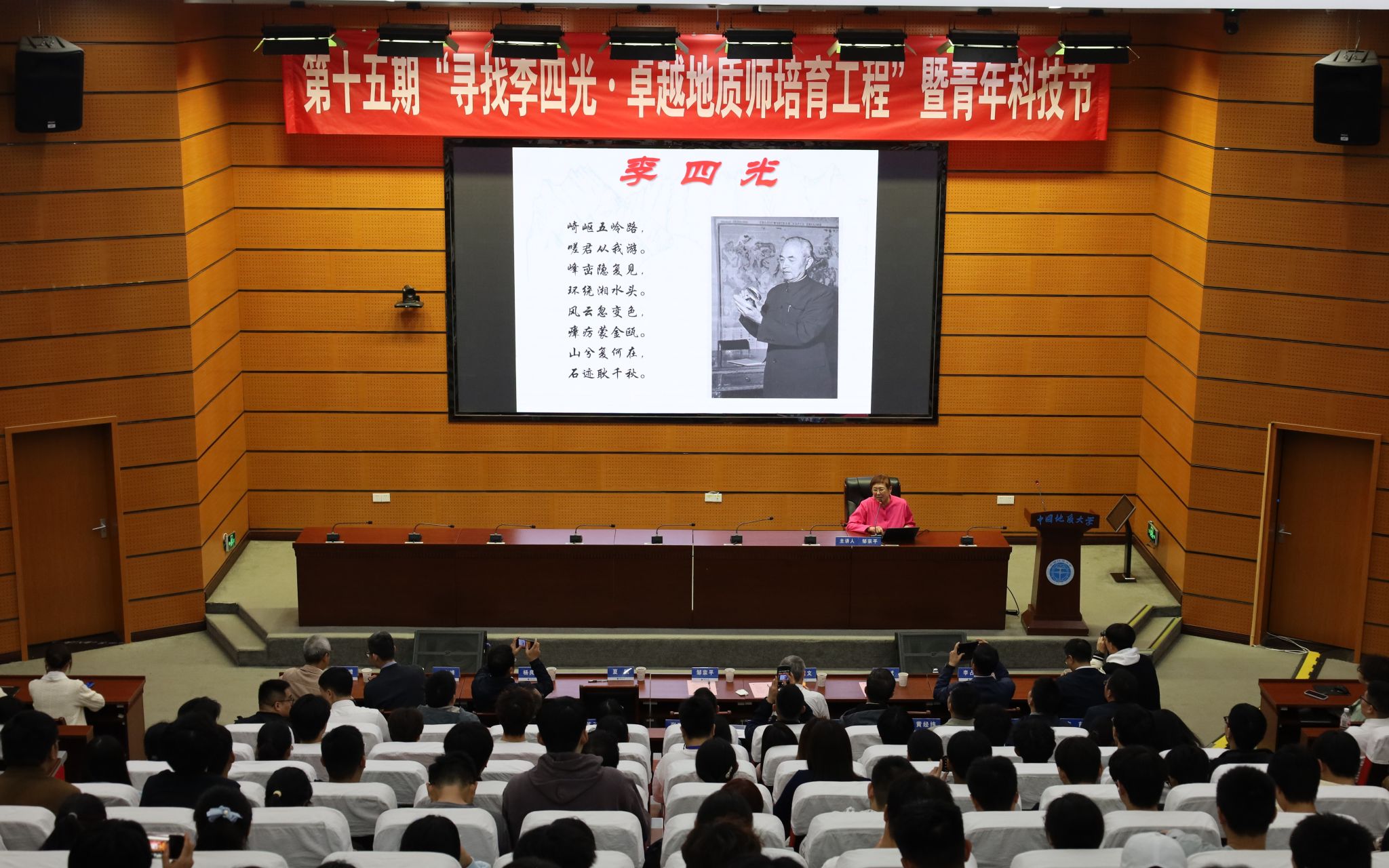 (通讯员 陈嘉昕 张萍萍 刘睿 陈宇 摄影 张少龙 陈抒言 常宇涵)10月16日,我校在南望山校区东教楼A0113教室举行第十五期“寻找李四光·卓越地质师培育工程”开幕式暨“李四光精神”报告会。中国科学家精神宣讲团成员、李四光纪念馆高级顾问、李四光先生外孙女邹宗平女士,李四光纪念馆黄启文先生,湖北省李四光研究会副秘书长、湖北省地质科学研究院副院长杨良哲,黄冈市李四光纪念馆办公室主任夏炜,我校副校长夏帆,图书档案与文博部部长帅斌,党委学工部副部长王海峰、校史馆副馆长苏玉微,湖北名师徐思煌教授,福利姬